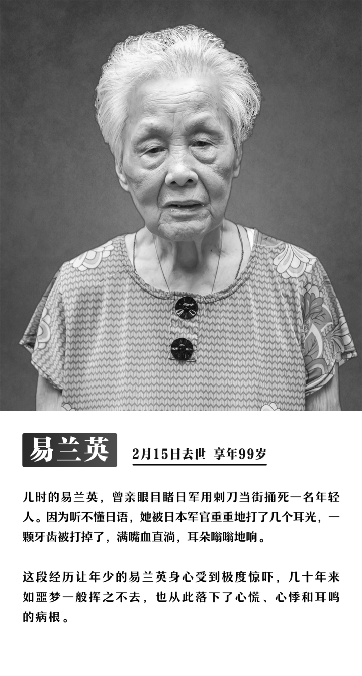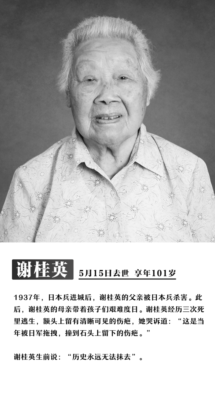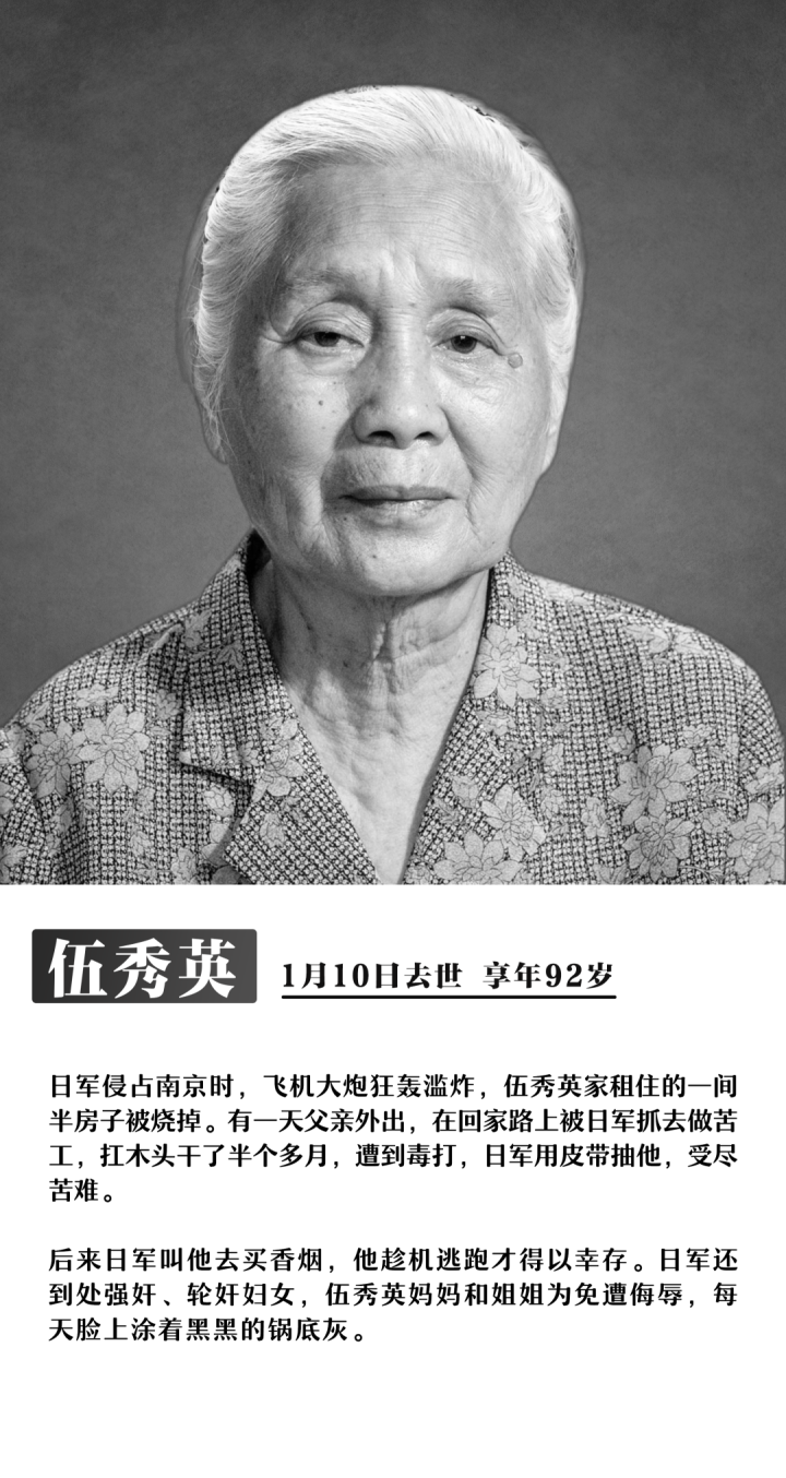 截至12月4日,今年已有8位南京大屠杀幸存者离世,他们没有等到今年的国家公祭日。他们是:艾义英、伍秀英、易兰英、陶承义、谢桂英、刘贵祥、熊淑兰、唐复龙。受害者们逐渐远去,但历史不容遗忘,事实不会因侵略者的巧舌抵赖而消失!不忘过去,逝者安息!